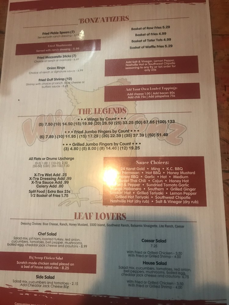 Wingbonz Menu